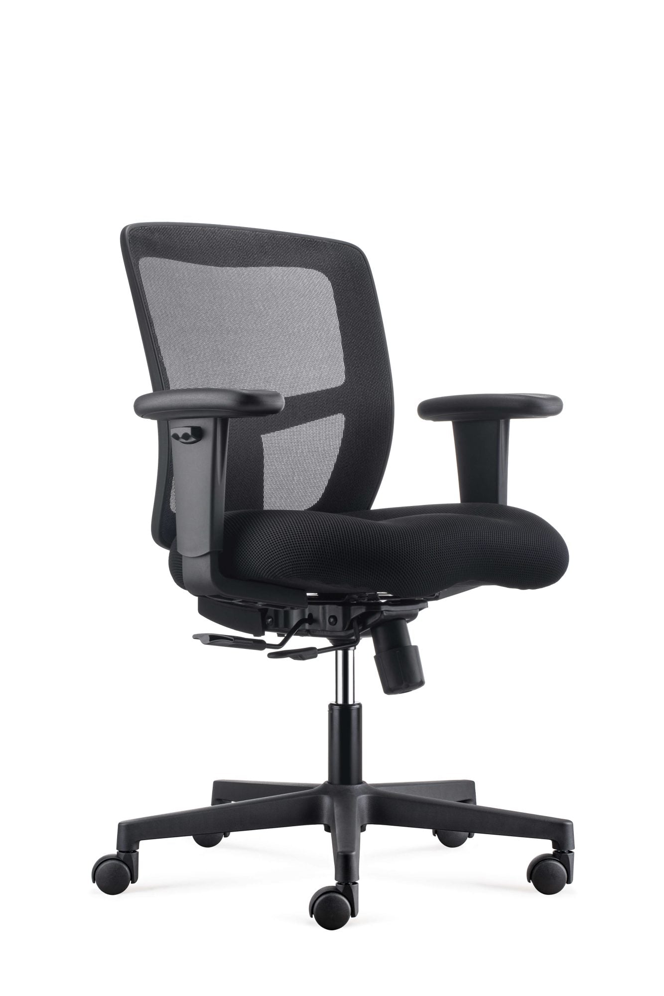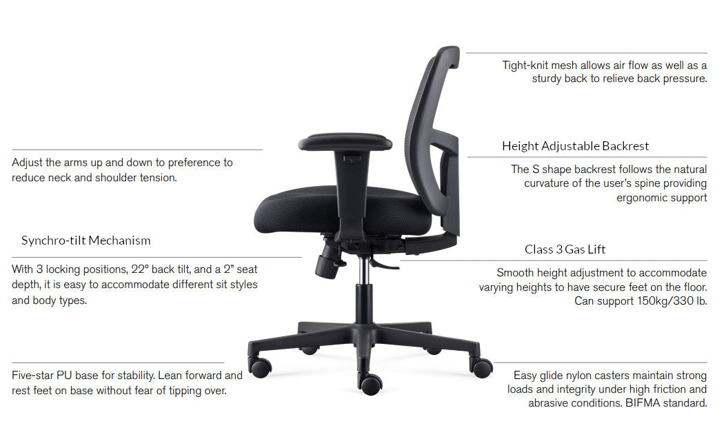 With 3 locking positions, 22º back tilt, and a 2” seat depth, it is easy to accommodate different sit styles and body types.