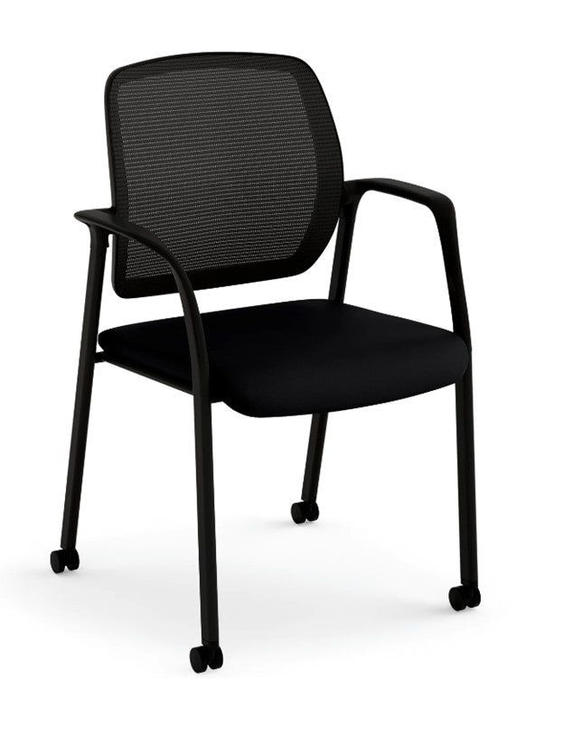 HON Nucleus Recharged Guest Chair with Flex Back | Black Frame and Mesh | Fixed Arms | Centurion Black Fabric