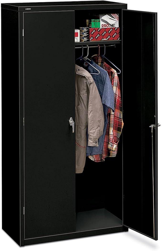 Brigade storage cabinets from HON hold up to your expectations. This 18"D x 72"H rugged, factory-assembled model features a reinforced, perimeter-welded case and two Chrome handles. Shelves can be adjusted in 2" increments. Lock is standard. Finish color is Black.