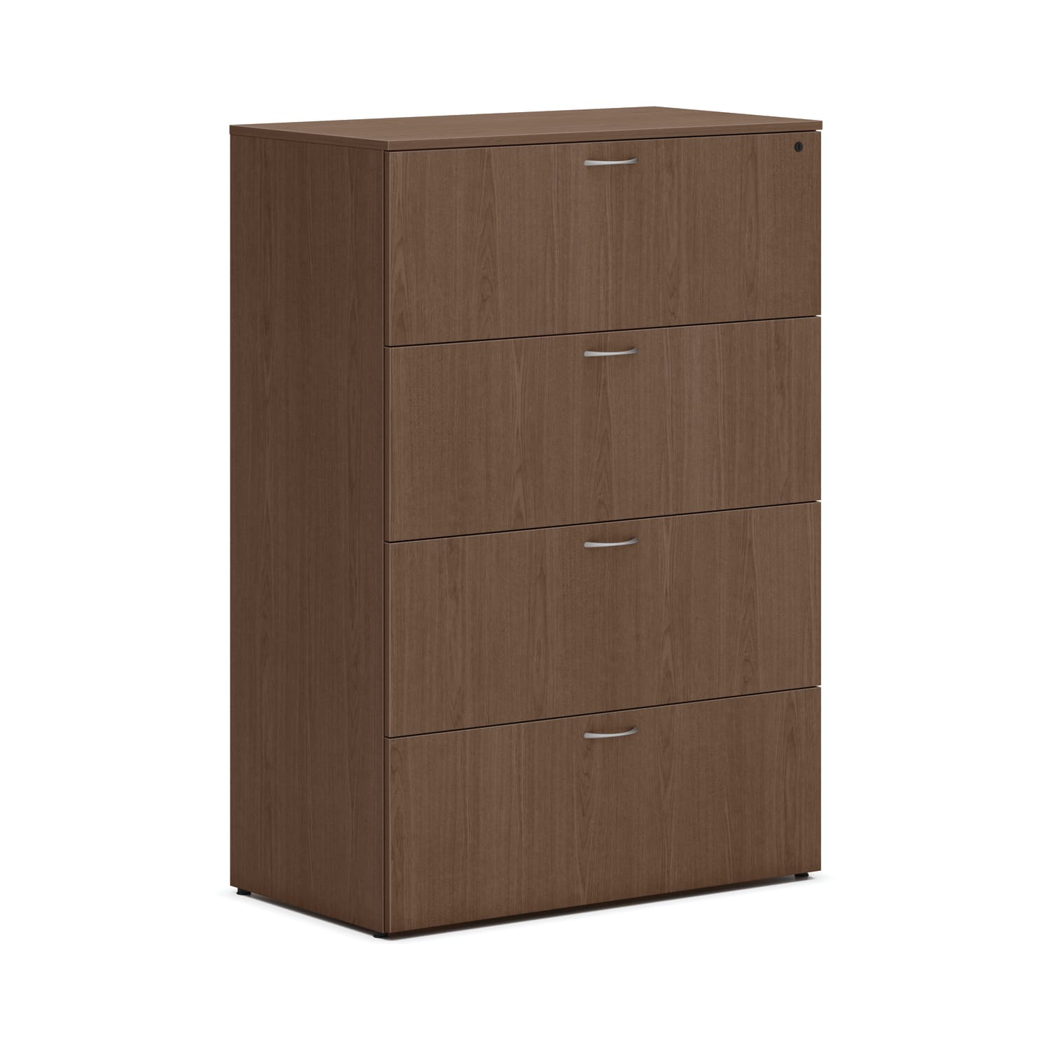 Tackle your toughest storage needs with the HON Mod 4-Drawer Lateral File, featuring a clean, contemporary Sepia Walnut finish. With generous capacity and durable construction, this vertical file cabinet keeps important documents organized, secure, and easily accessible—all while elevating your office aesthetic.