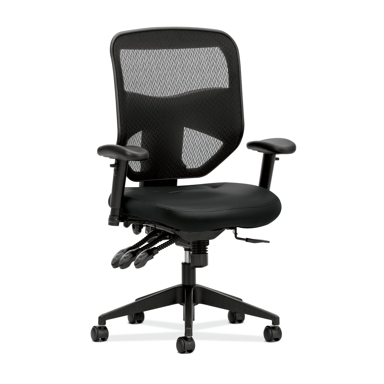 HON Prominent Mesh High-Back Task Chair | Asynchronous Control, Seat Glide | 2-Way Arms | Black Leather