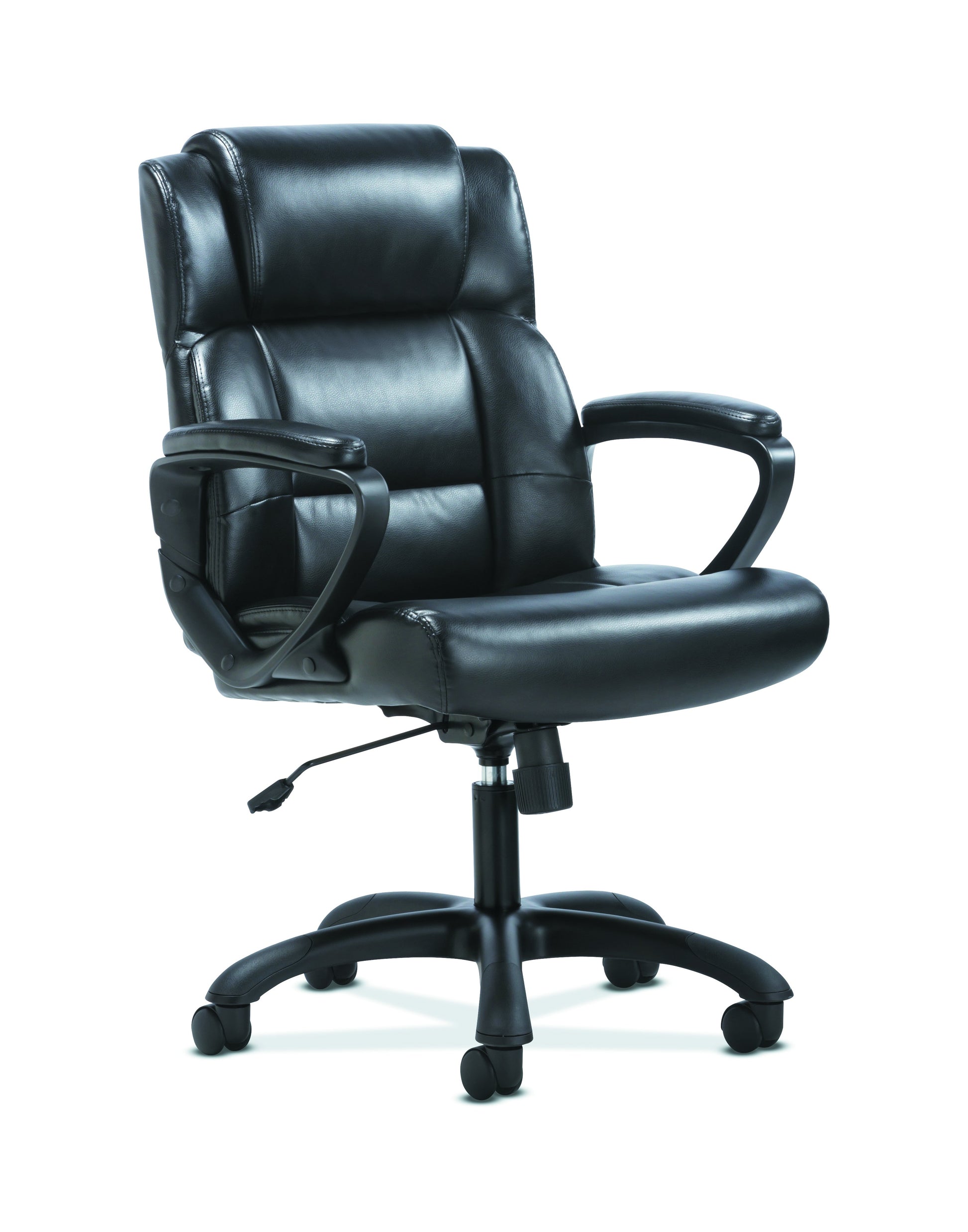 Bring executive comfort to your office with the Sadie Mid-Back Chair. Upholstered in sleek black bonded leather with fixed padded arms, this chair offers professional style and all-day support at an affordable value.