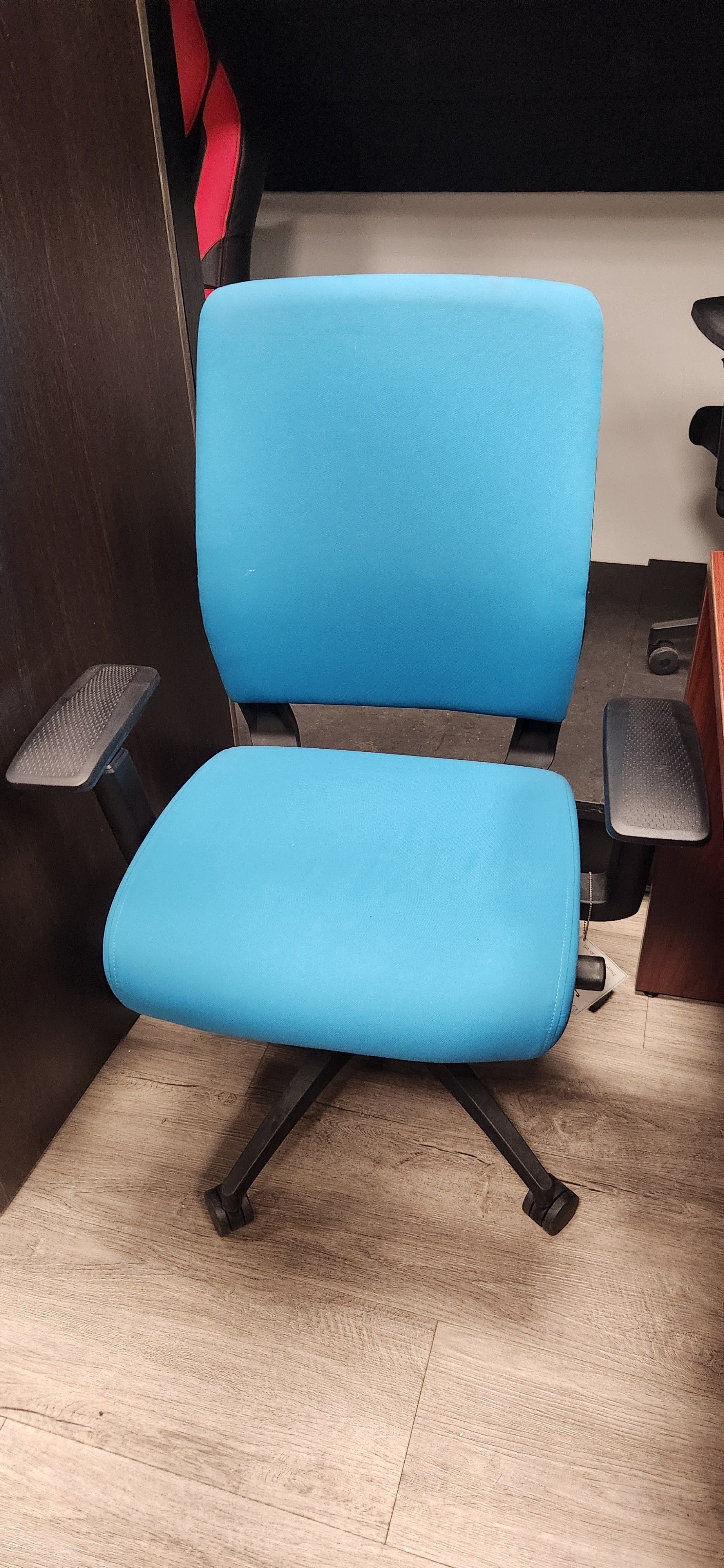Upgrade your workspace with the preowned Sit on It Amplify Blue Task Chair, designed for ergonomic comfort and modern style. With adjustable features and breathable mesh backing, this chair offers premium support at a budget-friendly price.